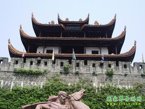 作為楚漢名城,長(zhǎng)沙2000多年前就有寬厚的夯土城垣。明初悉改石基磚砌,外繞護(hù)城河。辛亥革命后拆城墻修環(huán)城公路,僅地勢(shì)最高的天心閣一段作為勝跡保留。時(shí)人有聯(lián)曰:“閣上九霄迎日月,城留一角看江山”。這段古城墻現(xiàn)長(zhǎng)387.8米,高13.4米,頂面寬6.1米。分內(nèi)外兩城,外城又筑南北兩月城,內(nèi)有藏兵洞、炮洞等,并留清代鐵炮4門(mén)。城墻上尚存的斑斑彈痕,向人們?cè)V說(shuō)著城墻下的一段悲壯歲月:1852年9月10日,太平軍抵長(zhǎng)沙南門(mén)外。西王蕭朝貴身先士卒,躍馬揮劍,在前沿指揮攻城,不幸于9月12日中炮犧牲。以此為背景,《太平軍魂》群像雕塑1993年10月在天心閣古城墻下揭幕,向世界展示了一曲農(nóng)民革命戰(zhàn)爭(zhēng)的悲壯頌歌。