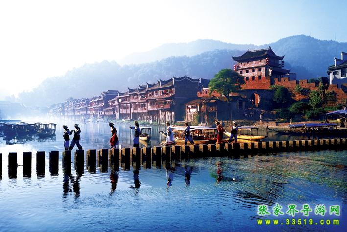 鳳凰古城是中國歷史文化名城,首批中國旅游強(qiáng)縣,國家4A級景區(qū),曾被新西蘭著名作家路易艾黎稱贊為中國最美麗的小城。地理位置可概括為:“西托云貴,東控辰沅,北制川鄂,南扼桂邊”。這里與吉首的德夯苗寨,永順的猛洞河,貴州的梵凈山相毗鄰,是懷化、吉首、貴州銅仁三地之間的必經(jīng)之路。作為一座國家歷史文化名城,鳳凰的風(fēng)景將自然的、人文的特質(zhì)有機(jī)融合到一處,透視后的沉重感也許正是其吸引八方游人的魅力之精髓。古城建于清康熙年間,這顆“湘西明珠”是名副其實的“小”,小到城內(nèi)僅有一條像樣的東西大街,可它卻是一條綠色長廊。
