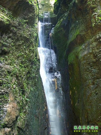 坐龍峽擁有中國第一條特種游道。所有游道均建于峽谷深處,依山取勢,既經(jīng)細心雕琢聽卻又渾然天成。粗樸的板栗木棧道,可以讓你零距離的親近那一潭碧幽、聽聞山泉叮咚;精巧的跳墩,可以讓你媳戲流泉、觸感溪瀑;原質的石坎道,讓你不得不調動全部的身心能量悉心攀援、感悟峽谷;有驚無險的鐵梯,讓你伴著腳下轟鳴的溪水,在驚怵中體味一份快慰。 出口出的土家山寨,保留了古樸獨特的生活習俗。一塊臘肉就一口醇香的“苞谷燒”會讓你洗去所有的疲憊,在輕松中憨厚的主人向你講述過去強人出沒的故事