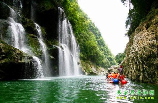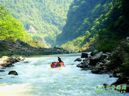 猛洞河因“山猛似虎,水急如龍,洞穴奇多”而得名。“張家界看山,猛洞河玩水”已是湖南湘西旅游精髓。猛洞河水量豐富,河流坡降大,水急灘多浪奇,高大的峭壁直插水面,兩岸并相靠攏,形成幽深的峽谷景觀。沿河兩岸古木蒼天,蒼翠欲滴,奇石錯落,流泉飛瀑隨處可見,下游一路水碧山青,風(fēng)光秀麗,野猴成群,溶洞奇特。猛洞河天下第一漂項(xiàng)目位于猛洞河支流,全長47公里,最精彩處位于哈妮宮至牛路河段,長約17公里。該景區(qū)兩岸多為原始次森林,蔥蔥郁郁,水流湍急,碧綠清亮,有十里絕壁,十里瀑泉,十里畫卷,十里洞天的美譽(yù)。其中有急流險(xiǎn)灘108處,大小瀑布20處。漂流,穿急流,越險(xiǎn)灘,闖狹谷,捕激浪,有驚無險(xiǎn),回味無窮。特別是哈妮宮、三角巖、雞籠門、遇仙峽(捏土)、閻王灘、落水坑、夢思峽、鯉魚剖肚、三大炮等景點(diǎn),無不令人叫絕觀止。