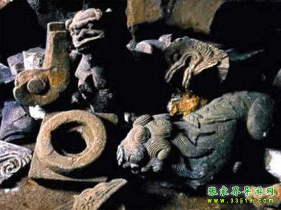 土司古墓群多集中于司城紫金山、雅草坪、帕桶湖三個(gè)地方,其中以紫金山最多。據(jù)勘察,紫金山一處共有土司王及其貴族墳?zāi)?09座。彭福石沖以后的土司、土官及其眷屬,都分別埋葬在這里。古墓的規(guī)模大小,視其官爵而定。從已挖開(kāi)的30多座古墓來(lái)看,基本形式是用土磚拱成半圓形,墓前有石人石馬,四周筑有圍墻,進(jìn)出必經(jīng)鐵門(mén)。墓室四壁上刻有精美的花草圖案和龍鳳圖案。棺材系楠木、梓木做成,用土漆漆成烏黑色,并用鐵鉤懸掛在石室之內(nèi)。隨葬器物也極為豐富,有金花、金譬、發(fā)插、耳環(huán)、蓮蓬等金銀飾物,還有各種玉器等。明代一些名土司彭顯英、彭冀南等人的墳?zāi)怪两裆斜4嫱旰?。古墓群現(xiàn)為湖南省重點(diǎn)文物保護(hù)單位。