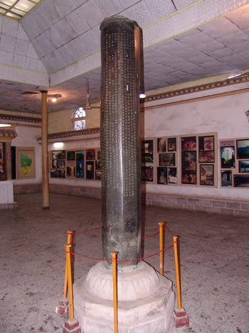 彭士愁戰(zhàn)敗后于后晉天福五年(公元940年)與馬希范議和,把戰(zhàn)爭(zhēng)的經(jīng)過(guò)和議和的條款,鐫刻于銅柱之上。銅柱重五千斤,高丈二尺,入土六心,形為八面,中空,內(nèi)實(shí)鉅錢(qián),柱端覆蓋銅頂,銘誓狀于銅柱之上,立于會(huì)溪,宋天禧二年(公元1018年)重立時(shí),又羼刻了一些土官銜名。清中葉,柱上銅頂被盜,沉于江心,柱內(nèi)銅錢(qián)亦被人以飴粘錢(qián)殆盡。清光緒十一年(公元1885年),永順府知府張?jiān)鴵P(yáng)建亭保護(hù)。民國(guó)年間亭被毀。”銅柱的銅質(zhì),精純光潤(rùn);八面所鐫顏、柳體陰文,雖經(jīng)千載風(fēng)雨洗刷,霜雪蝕磨,仍清晰如初。溪州銅柱是研究土家族古代歷史的重要文獻(xiàn)。土家族視銅柱為神物。