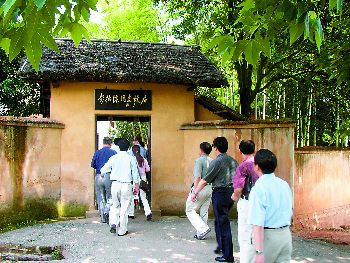 在彭總故居西頭的三間橫屋里,是彭總光輝一生的輔助陳列室。這里陳列著60多張圖片和50多件文物,其中有彭總在廬山會議期間呈送的“萬言書”復制件。這些照片和文物向人們講述著彭總光輝壯烈的一生。