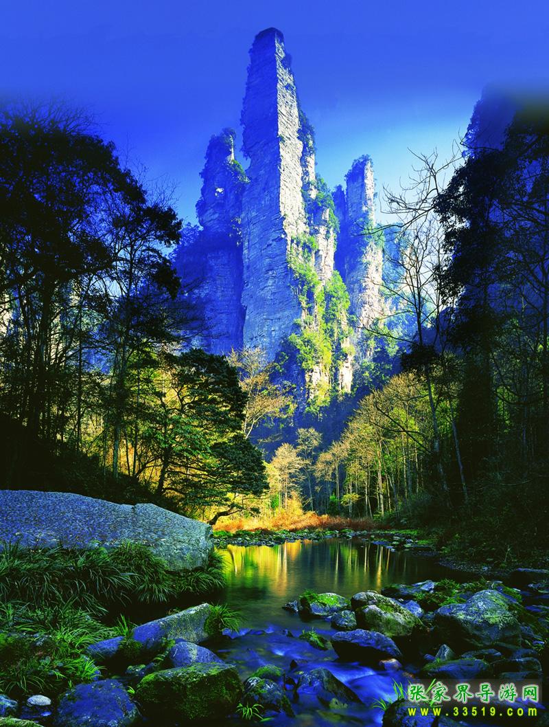 張家界國家森林公園位于湖南省西北部張家界市境內(nèi),是1982年由國務院委托國家計委批準成立的中國第一個國家森林公園,1992年12月因奇特的石英砂巖大峰林被聯(lián)合國列入《世界自然遺產(chǎn)名錄》,2004年2月被列入世界地質(zhì)公園。公園自然風光以峰稱奇、以谷顯幽、以林見秀。其間有奇峰3000多座,這些石峰如人如獸、如器如物,形象逼真,氣勢壯觀。峰間峽谷,溪流潺潺,濃蔭蔽日。有“三千奇峰,八百秀水”之美稱。公園不僅自然風光壯美絕倫,而且森林植物和野生動物資源極為豐富,森林覆蓋率達98%,是一座巨大的生物寶庫和天然氧吧,被稱為“自然博物館和天然植物園”。草木禽獸與奇山異水,同生共榮,形成完美的自然生態(tài)系統(tǒng)。