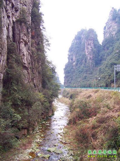 百丈峽是武陵源風景名勝區(qū)通往張家界市的公路貫通整個峽谷,因有堵高近百丈的石壁,直插云霄,不敢仰視,故而得名。據(jù)《慈利縣志》載,索溪峪右得百丈峽,峽長三十公里……又相傳向王天子起義軍與官兵在此先后博殺一百仗,依此又名百仗峽。明代九永兵備胡桂芳,一生好游歷山川,來到百丈峽后題寫了一首七言詩:“峽高百丈洞云深,要識桃源此處尋;戎旅徐行風雪緊,誰將興盡類山蔭。”刻于峽內(nèi)道旁石壁上。