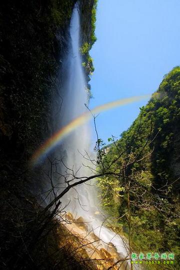 【神泉峽】有請各位朋友注意,我們行走到這里,您會發(fā)現(xiàn),峽谷在這一段猛然一下子收縮了,變得越來越窄了。這段很窄的峽谷叫做神泉峽,總長300余米。在神泉峽,我們要穿過兩處水簾瀑,請大家保護好自己的攝像機、照相機等貴重物品,以免打濕受損。同時還要注意腳下,慢慢行走,因為這一段的木板棧道很滑。