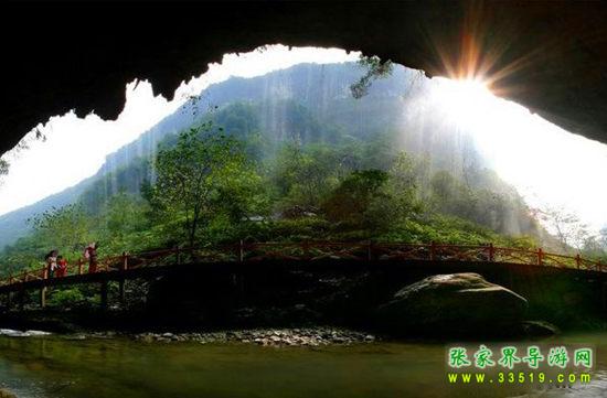 【中華牌天然空調(diào)】喲,我們行走到這里,怎么感覺到了陣陣涼風(fēng)撲面而來?!奧,原來是游道的轉(zhuǎn)角處有一個天然的涼風(fēng)洞。大家都知道,張家界的天然溶洞很多,比如黃龍洞、龍王洞、九天洞,還有我們公司即將開發(fā)的更漂亮更具有特色的懸絲洞。溶洞內(nèi)都是冬暖夏涼,和洞外的氣溫不一樣。所以,游客朋友們都叫它中華牌天然空調(diào)。大家可以在這里盡情地享受天然空調(diào)。
