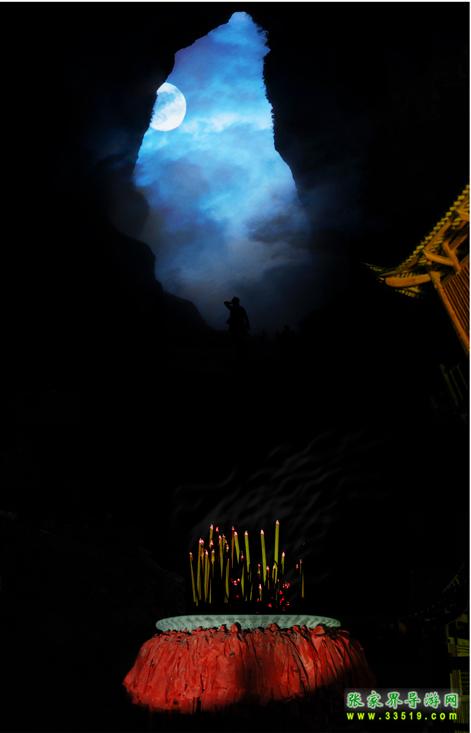 雄偉高大。清人王子睿詩曰:“推得石門開,去天才五尺”。天門洞高131.1米,寬30米,深37米,可容納300人,可修建一董16層高的樓房。清代一 知縣李瑾站在永定衛(wèi)城的上觀望,只見“巖竇半吞清夜月,山阿常宿隔霄云”。此時的天門洞,把月亮吞去了一半。