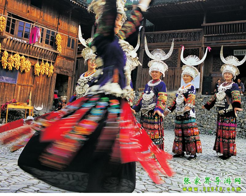 苗族在歷史長(zhǎng)河中創(chuàng)造了珍貴的文學(xué)藝術(shù)。苗族民間文學(xué)分為民間歌謠、民間故事和諺語(yǔ)三大集成。民間歌謠分為史詩(shī)、古歌、苦歌、敘事歌、生產(chǎn)歌、風(fēng)俗歌、起義歌、情歌、兒歌等,能唱的韻文作品有《遷徙歌》、《勞動(dòng)歌》、《開(kāi)親歌》、《盤龍歌》、《盼紅軍》、《送兒當(dāng)紅軍》、《苗家想念紅軍》、《初戀歌》、《定姻緣歌》等。民間故事有《雷公和高比的故事》、《崇山的傳說(shuō)》、《蘆笙是怎樣吹起來(lái)的》、《謊江山》、《石姓不吃狗肉》、《龍家姐妹》、《紅軍樹(shù)》等。苗族民間藝術(shù)分為音樂(lè)、舞蹈、戲劇和工藝四類。音樂(lè)又分為苗歌和樂(lè)器兩類。苗歌按其腔調(diào)分為高腔、平腔兩類;樂(lè)器按演奏方式分為打擊樂(lè)器和吹奏樂(lè)器兩類。打擊樂(lè)器有銅鼓、銅鑼、銅鈸和鈴等。吹奏樂(lè)器有嗩吶、蘆笙、長(zhǎng)號(hào)、筒簫等。苗族舞蹈有木鼓舞、蘆笙舞、跳香舞和接龍舞。苗族戲劇有儺堂戲、花鼓戲和苗戲等。苗族工藝有刺繡、挑花、織花帶、織提籃、織背簍、蠟染和銀飾等。其中,苗繡、花帶、苗族織錦、苗族銀飾、蠟染服飾和飯簍等工藝品已經(jīng)成為張家界風(fēng)景區(qū)的旅游紀(jì)念品,為海內(nèi)外無(wú)數(shù)游客喜愛(ài)。
