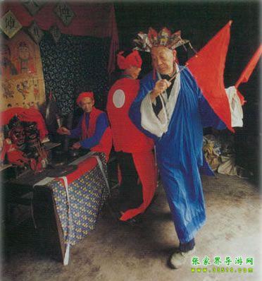 儺戲在湘西土家族地區(qū)也稱儺堂戲、儺神戲,它與土家族原始巫教、巫術(shù)的關(guān)系極為密切。土家族先民信奉的神有儺神、八部大神、土地神等,作為一種宗教活動(dòng),這種原始信仰與社會(huì)生產(chǎn)活動(dòng)、文娛活動(dòng)及民族習(xí)俗是融為一體的,因此儺戲最先的“沖儺還原”帶有明顯迷信色彩,土家族群眾中有“一儺沖百鬼,一愿了千神”的說(shuō)法,湘西土家族人干脆叫它為“神戲”。湘西土家族儺戲的發(fā)展過(guò)程大體是儺、儺舞、儺儀然后才產(chǎn)生儺戲。儺舞源于久遠(yuǎn)的蒙昧?xí)r期,土家先民們?cè)谕笞匀蛔鞫窢?zhēng)、同毒蟲(chóng)猛獸作斗爭(zhēng),便產(chǎn)生了化裝護(hù)面、在鼓樂(lè)聲中奔騰呼號(hào)、沖殺跳躍的原始儺舞,其所模擬的鳥(niǎo)雀舞、猿猴舞、熊舞等頗為壯觀。儺舞與儺這種驅(qū)鬼消災(zāi)的祭祀儀式結(jié)合后,增加了祈求人獸平安、五谷豐登、緬懷祖先、勸人去惡從善、以及傳播生產(chǎn)知識(shí)等內(nèi)容,這就逐漸形成了兼?zhèn)潢U弘教義及娛樂(lè)性質(zhì)的祭祀風(fēng)俗歌舞。[2]土家族儺戲就是在此基礎(chǔ)上發(fā)展起來(lái)的。部分土家族學(xué)者認(rèn)為土家族儺戲的遠(yuǎn)源可以追溯到戰(zhàn)國(guó)時(shí)代的《九歌》,《九歌》是土家族儺戲的雛形,他們的依據(jù)是當(dāng)時(shí)楚國(guó)的沅湘流域,人們“信巫鬼、重淫祀”(《漢書(shū)·地理志》),從而使得“陰陽(yáng)人鬼之間,又或不能無(wú)褻慢淫荒之雜”(宋代朱熹《楚辭集注》)。屈原正是加工整理了這一類(lèi)“鄙陋”之詞,才創(chuàng)作出《九歌》、《天問(wèn)》等名篇。也有部分學(xué)者不贊同這種論點(diǎn),他們認(rèn)為土家族儺在宋代還停留在儺祭和儺舞階段,最遲到明代,土家族儺才發(fā)展成為儺戲[3]。嘉靖《常德府志》記載:“歲除,歲將盡數(shù)日,鄉(xiāng)村多用巫師,朱裳鬼面,鑼鼓喧舞竟夜,名曰還儺。”文中未點(diǎn)明“儺戲”二字,但卻使用了“還儺”一詞,這與今天民間對(duì)儺戲的稱呼相似。又據(jù)清乾隆《永順縣志》載:“永俗酬神,必延辰郡巫師唱演儺戲,……至晚,演儺戲。敲鑼擊鼓,人各紙面一,有女裝者,曰孟姜女;男扮者,曰范七郎。”在土家族儺戲中,孟姜女傳說(shuō)故事占著非常重要的地位。在湘西土家族地區(qū),儺戲一般有二十四正戲,即二十四戲神。每次儺儀結(jié)束時(shí),巫師要用香火在黃裱紙上燒二十四個(gè)洞,以表示奠祭二十四戲神。民間有諺語(yǔ):“儺神菩薩不識(shí)字,只要二十四個(gè)圈圈滿。”在二十四儺神中,被稱為勾愿神的姜女、范郎是還儺愿時(shí)非常重要的兩位神靈。在儺戲中,《孟姜女》是整場(chǎng)的高潮,平時(shí),儺戲唱完后,由沒(méi)下裝的孟姜女、范郎去向主人家及觀眾“拜臺(tái)”,以示“了愿”。清代中期以后,儺戲吸取了花燈、陽(yáng)戲、高腔等其他地方戲劇劇種的唱腔和劇目,逐漸變得日益成熟。我們仔細(xì)查看了全國(guó)371個(gè)劇種,發(fā)現(xiàn)儺戲、花燈戲有著相同的班社,也就是說(shuō)一個(gè)演出班社可以演出儺戲、花燈戲兩個(gè)劇種。這段時(shí)期,儺戲已作為獨(dú)立戲劇劇種參加演出。由于儺戲是由巫儺法事演變而成的戲劇形式,經(jīng)歷著巫儺法事(驅(qū)鬼祭祀)、儺壇上戲和儺堂正戲的發(fā)展過(guò)程。