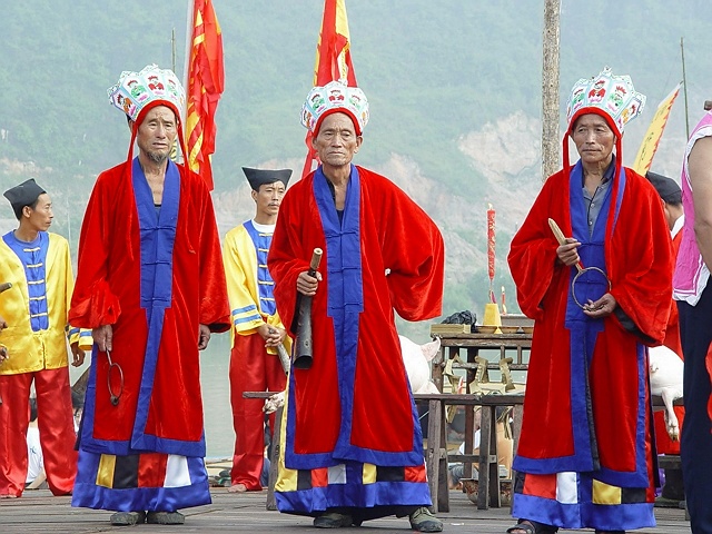 梯瑪俗稱土老司,意為敬神的人,土家族一年一度的“調(diào)年擺手”敬神祭祀活動(dòng),都由梯瑪一手執(zhí)掌,祭祀過程中梯瑪演唱的敬神之歌就叫“梯瑪神歌”。為真實(shí)演繹出湘西土家的神秘歷史,湘西幾位幸存的梯瑪大師、鬼谷神功的四十三代傳人、在歐美多次舉辦過演唱會(huì)的苗歌皇后龍仙娥,四上人民大會(huì)堂匯報(bào)演出的侗歌合唱團(tuán)以及土家蜘蛛人等一批民間藝人參與演出。200多名演職人員中,年齡最大的96歲,最小的3歲,由湘西地區(qū)原生態(tài)演員和群眾演員組成。