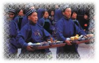 指著圓符,不久,蒙面者便神魂入定;似有神附體,慢慢地全身抖動起來,手舞足蹈,這就是已“進入陰間”。據傳過陰之人,雖蒙頭蓋面,也能辨別方向,隨法師的指使行事,陰間之事能有問必答,人們所要了解之事,也都從他們那里得到答復,并可以探求禳解之法。法師用法術指使他們去做各樣事情。到一定時間,法師用咒語報他們招回,他們在法師的指示下,陸續(xù)返回陽世清醒過來。若有個別不能返回,法師則加倍對他們施法,用刀指向他,并念咒畫符,強令返回。過陰之人蘇醒后,法師揭開頭蓋,這時個個面色慘白,目光遲鈍,如害一場大病。法師再施以復原之術,使之慢慢復原。他們復原后,完全忘記陰間的事情。