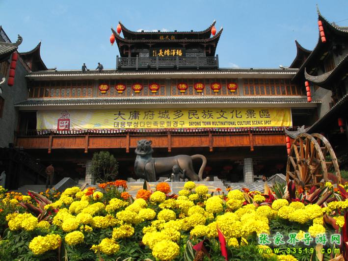 然后前往游覽大庸府城——張家界民俗文化旅游城,大庸府衙所在地,張家界博物館,張家界多民族非物質文化遺產展示館,張家界市游客服務中心,五大少數民族祭祀祈福中心、風情演繹中心。集吃、住、游、購、娛于一體,內設星級酒店、民俗客棧、特色美食一條街、民族商品購物街、民俗風情酒吧街、休閑洗浴中心、張家界市游客服務中心。