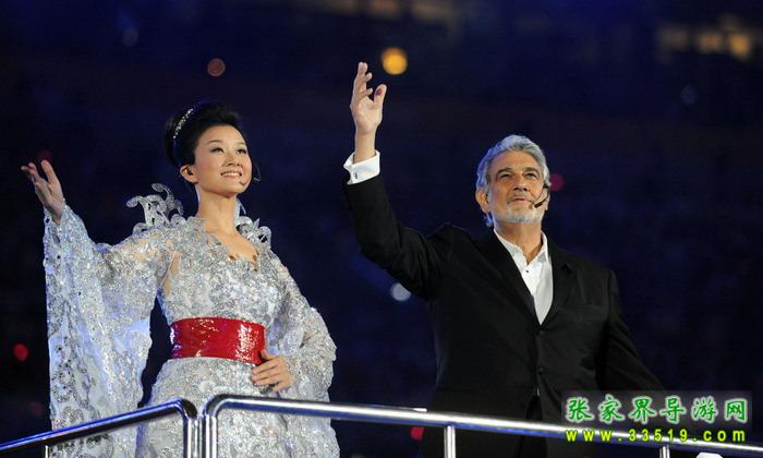2008年8月24日晚8時,奧運會閉幕式在“鳥巢”舉行。備受期待的我國著名歌唱家宋祖英和世界三大男高音之一的著名男高音歌唱家多明戈的合唱《愛的火焰》在鳥巢響起,多明戈給予了宋祖英高度評價——“歌聲甜美,非常有藝術性。人長得非常非常漂亮,和她同臺演唱是一件非常非常高興的事情……”。在舞臺中央,宋祖英一襲銀光禮服成為了鳥巢場內(nèi)的亮點,紅色的腰帶更為這套禮服平添了幾分中國韻味。多明戈白色的襯衣搭配著黑色的西裝顯得優(yōu)雅而莊重.