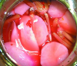 介紹: 團年菜又稱“合菜”,為土家族過年家家必制的民族菜。將蘿卜、豆腐、白菜、火蔥、豬肉、紅辣椒條等合成一鼎鍋熬煮,即成“合菜”。除味道佳美,還別有深意。它象征五谷豐登,合家團聚,又反映土家人不忘先民的光榮傳統(tǒng)。