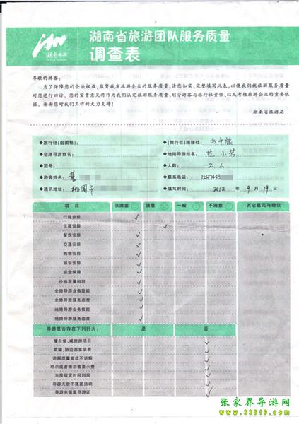 2012年9月19日董先生一行2人旅游質(zhì)量反饋