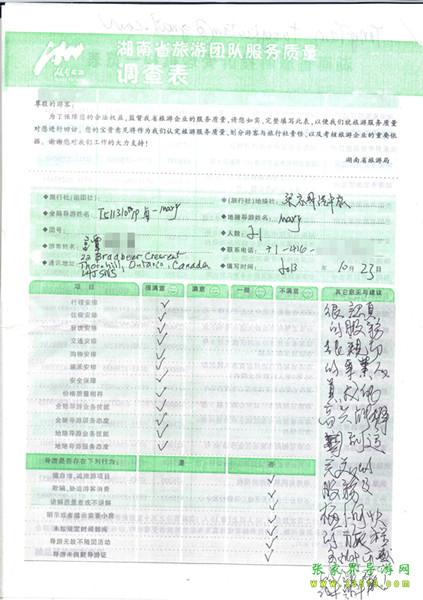 2013年10月23日譚先生一行21人旅游質(zhì)量反饋