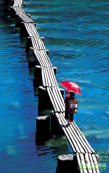 還有那鳳凰人在江邊用木板洗衣服時的情形也是難忘的。小住幾天,都會發(fā)現(xiàn)從一早到一晚都有當?shù)氐木用裨阢吷舷匆路?,他們?nèi)巳硕寄靡豢焯刂颇景澹脕砬么蛞路?,特別在早上八、九點的時候,江兩岸的邊上、木橋的兩邊橋墩下,都蹲滿許多的人,當然婦女、老人居多,在那“啪啪”的洗衣服,此起彼伏,甚有節(jié)奏。時而有游人用照相機對其拍照,可他們似乎也習(xí)以為常了,毫不理會,特別在傍晚還會有脫得精光的小孩在岸邊的洗衣人周圍玩水,奇怪的是,他們并不害羞,也不害怕游人的鏡頭和目光,我想大城市里的孩子就少了這份的無機心的單純了。在這里生活無疑自然舒適淳樸的,我想他們的生活習(xí)慣從來就是如此的,沒有因我們游客的到來而有太大該變。