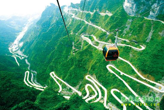 登天門山不需要爬山,至位于張家界市區(qū)的天門山索道下站,乘世界最長高山客運索道—天門山索道(長7.5公里)直達山頂,沿途可先鳥瞰美麗山城的醉人景 致,再飽覽清新靜謐的鄉(xiāng)村田園,然后緩緩飛渡進奇峰險壑的懷抱中,在山尖與陡崖之上不斷爬升,體驗騰云飛翔的刺激與震撼,30分鐘到達天門山頂原始空中花園。